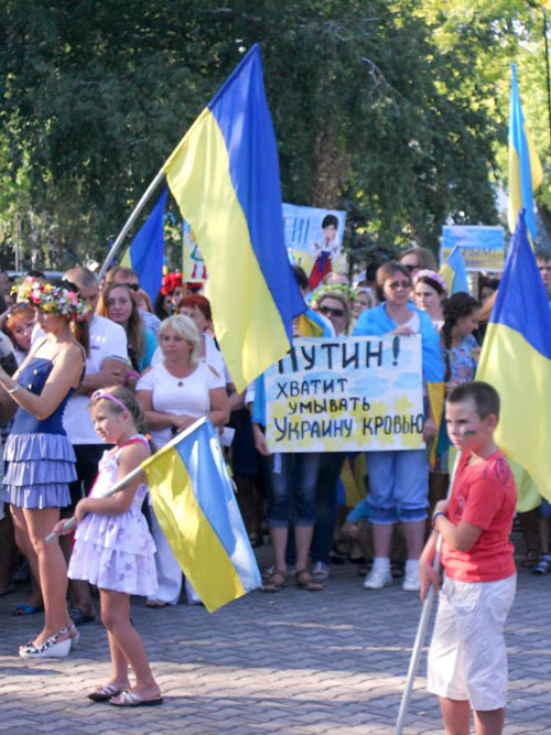 Около полутора тысяч горожан собрались на центральной площади Краматорска возле памятника Шевченко на митинг.