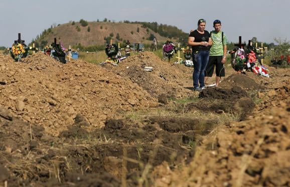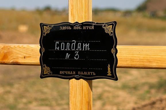 Большинство могил без имен погибших, только надписи "Солдат №". Сами же могилы - это длинная траншея, которую роет бульдозер.