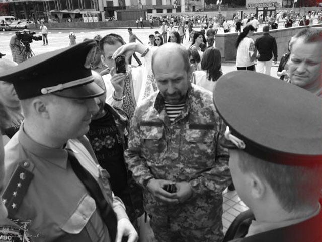 "Бойцы батальона "Айдар", во главе с комбатом Сергеем Мельничуком, сегодня прибыли в Киев для того, что бы принять участие в параде в честь Дня Независимости. Столичная милиция встретила Героев неприветливо и попыталась арестовать "Айдаровцев", -сообщил утром журналист Всеволод Филимоненко.