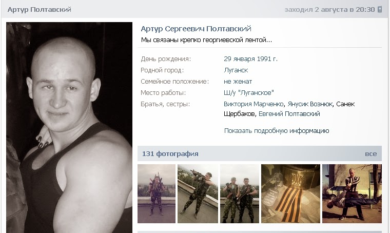 Подлежит уничтожению: Артур Полтавский - украинский террорист из Луганска 25 августа 2014 14:41 Профиль ВК https://vk.com/arthurpoltavsky