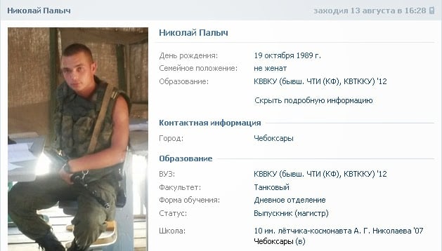 Лица оккупантов: Николай Палыч - российский террорист из Чебоксар 27 августа 2014 09:50 Профиль ВК https://vk.com/id216751790