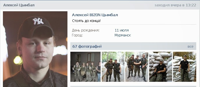 Подлежит уничтожению: Алексей Цымбал - российский террорист из Мурманска 28 августа 2014 08:46 Профиль ВК https://vk.com/id148209695