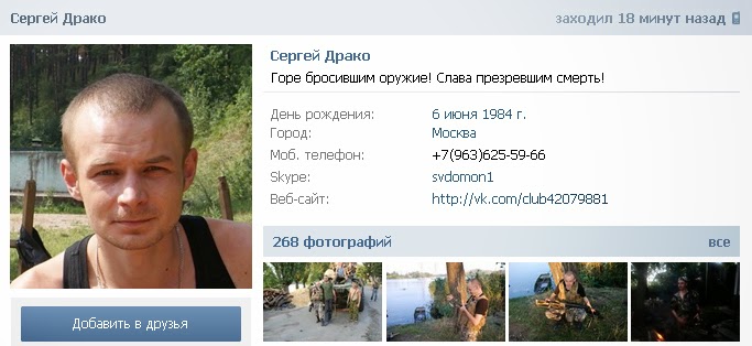 Подлежит уничтожению: Сергей Драко - российский террорист из Москвы 28 августа 2014 19:28 Профиль ВК https://vk.com/drakoha
