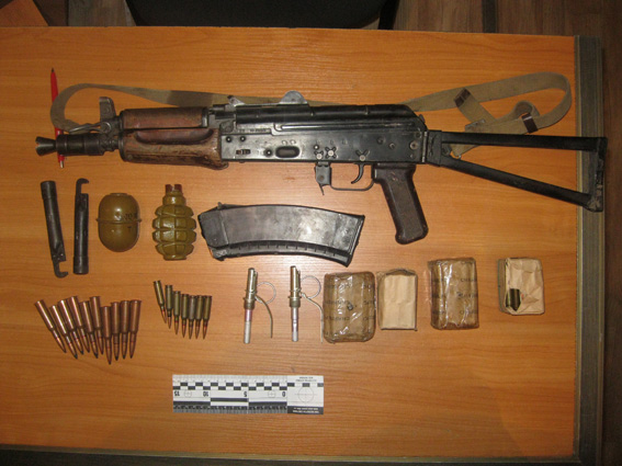 «Во время несения службы по охране общественного порядка сводным отрядом транспортных милиционеров в подземном переходе вокзала задержан 23-летний житель одного из сел Волынской области, у которого при досмотре личных вещей обнаружено и изъято: автомат АКСУ, ручную гранату Ф-1, гранату РГД-5 , 2 шт. запалов для гранат РГД-5, патроны калибра 7.62 мм – 60 штук, патроны калибра 5.45 мм – 97 штук, - заместитель начальника - начальник криминальной милиции на ст. Днепропетровск Калиниченко Алексей.