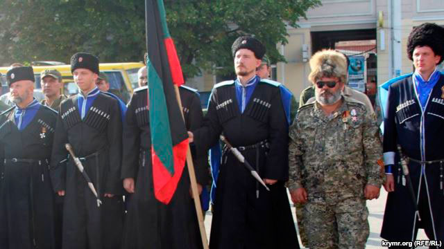 Бабай, воевавший против украинских силовиков на Донбассе, находился среди казаков на главной площади крымской столицы, где проходит гала-концерт Международного фестиваля казачьей культуры «Крымские тулумбасы».