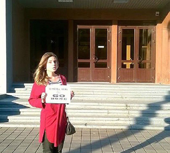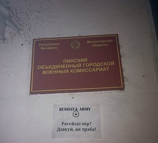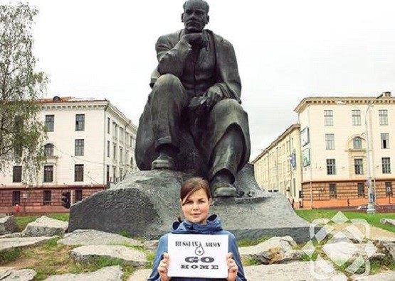 В частности, белорусские девушки из группы в Facebook Together for Belarus Разам для Беларусі сфотографировались с листовками «RUSSIAN ARMY GO HOME!».