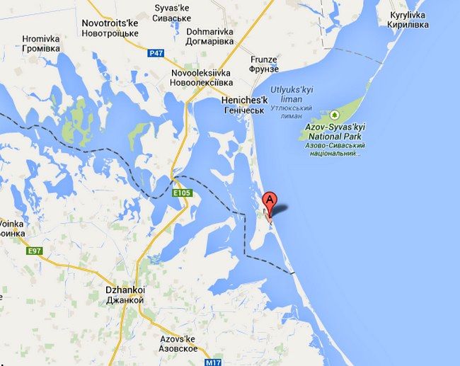 "Вчера в 12:50 для этого двумя грузовиками Урал в район Арабатской косы были доставлены и разгружены бетонные блоки", - отмечается в сообщении.
