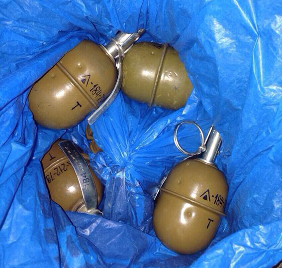 4 гранаты РГД-5 и 1 гранату Ф-1 сотрудники уголовного розыска Красногвардейского райотдела милиции обнаружили в сумочке 53-летней местной жительницы. Вместе с гранатами женщина несла и запалы к ним.