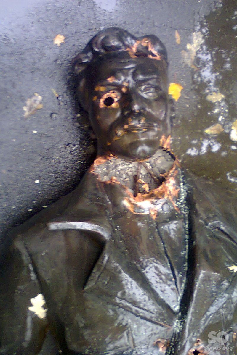В Харькове в ночь на 24 сентября неизвестные свалили и повредили памятник Артему. Памятник стоял в сквере на ул.Артема возле здания Харьковского национального технического университета сельского хозяйства им. Василенко.