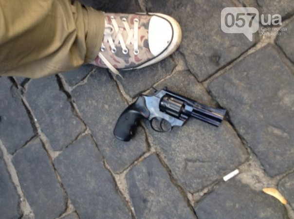 Подошедший начал громко орать, что те, кто снесли памятник, "фашисты" и "бЕндеровцы". Один из присутствующих попытался унять мужчину, но тот в ответ достал пистолет "Флобер" и начал стрелять в толпу.