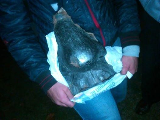 "Прошла информация, что городские власти собираются восстанавливать памятник. Если они захотят это сделать памятник, им понадобятся его части, в том числе и нос. Мы думаем, это - сумма, эквивалентная стоимости БТРа для добровольческого батальона, которому мы помогаем. Если нет, то в ближайшее время мы анонсируем аукцион: сформулируем условия и выставим его (нос) на продажу", - сказала активистка IT-Sector Влада.