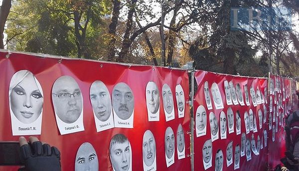 Как сообщают «Украинские новости», митингующие установили у здания Рады 8 ширм, на которых развесили около 200 портретов тех депутатов, которые не пришли в парламент на голосование по антикоррупционным законам.