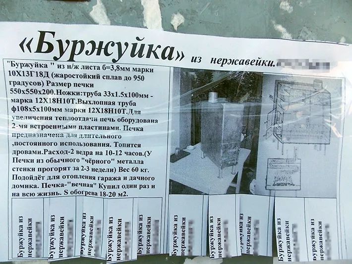 В контролируемом боевиками Донецке начали продавать буржуйки. Как отмечает Остров, объявление размещено на стенде в районе торгового центра «Золотое кольцо» в центре Донецка. 8 октября 2014 года.