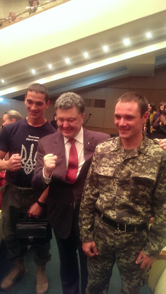 11 октября во время выступления президента Петра Порошенко в Национальном юридическом университете имени Ярослава Мудрого в Харькове к нему подошли бойцы, принимающие участие в обороне донецкого аэропорта.