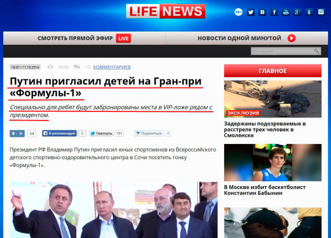 "Больше десяти минут ребята фотографировались с Владимиром Путиным и никак не хотели его отпускать, но российский лидер пообещал, что уже на следующий день они увидятся снова, и пригласил всех на предстоящий финал гонки Гран-при России. Причем места для ребят забронированы не на обычной трибуне, а в VIP-ложе рядом с Путиным", - сказано в сообщении издания.