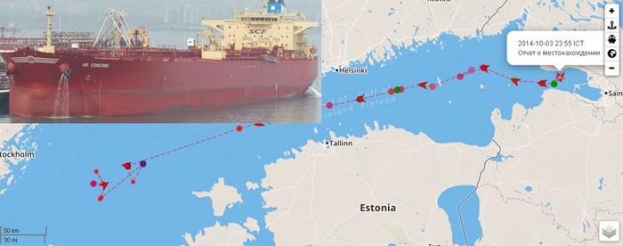 Последние 5 месяцев танкер провел в Санкт-Петербурге, если верить шведским морским экспертам. Вроде бы, зачем верить или нет, это серьезный танкер серьезной компании, проверь историю AIS, и все станет понятно. Однако в том и дело, что по ряду доступных мне веб-сайтов, отслеживающих сигналы AIS, история рейсов и портов захода NS Concord резко обрывается концом апреля и выходом из Роттердама.