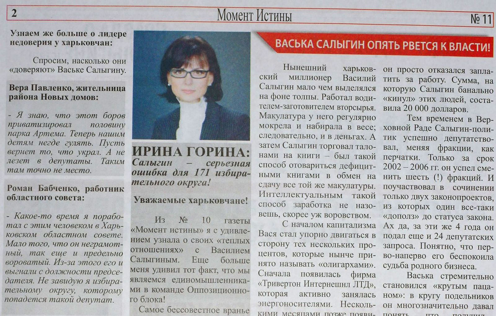Сегодня жители Фрунзенского района Харькова (171 избирательный округ) обнаружили в своих почтовых ящиках газетенку "Момент истины".