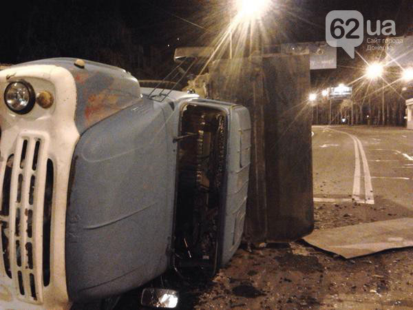 "Вчера, 24 октября, в 18.00, на улице Артема на пересечении с улицей Батищева, грузовик "ЗИЛ", ехавший на зеленый свет сбил танк. "ЗИЛ" перевернулся несколько раз, но, к счастью, водитель чудом остался жив. Боевики вместо того, чтобы помочь выбраться водителю из искореженной машины, как ни в чем не бывало, поехали дальше", - отмечает издание.