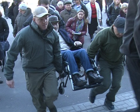 После того, как охрана занесла Кернеса в здание, он "выстоял" очередь и заехал в кабинку для голосования. Он предпочел обычную, а не для людей с ограниченными возможностями, которая находилась рядом.