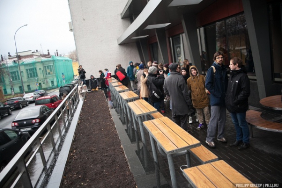 Почти полсотни человек стали в очередь к закрытоve из-за санкций ресторана быстрого питания McDonald's.