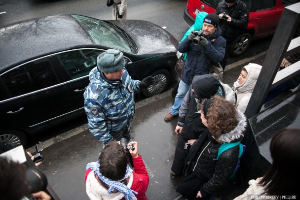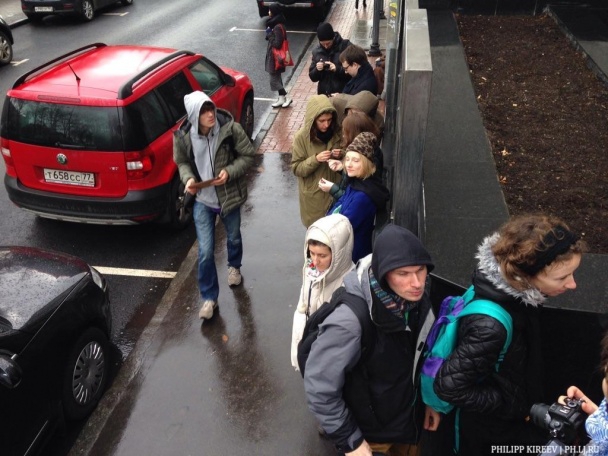 "Полицейский, смеясь, пригрозил людям из очереди, которые уже на тротуаре, задержаниями. Мол, мешают проходу граждан", - отметил Киреев.