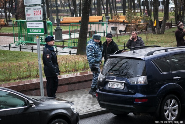 Полиция уже ждала начало акции и подогнала на всякий случай автозак, пишет в Twitter очевидец антисанкционного флешмоба Филипп Киреев.