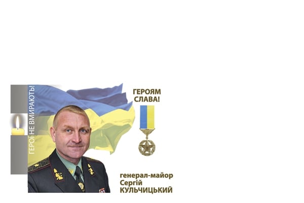 Как отмечается, художник Виктор Таран разработал эскиз почтового конверта с портретом генерал-майора Сергея Кульчицкого, который погиб 29 мая в борьбе с незаконными вооруженными формированиями (НВФ) в зоне проведения АТО, и которому присвоено звание «Герой Украины» и вручен орден «Золотая Звезда» (посмертно).