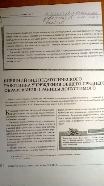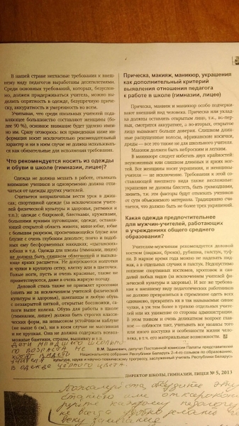 “Требование к внешнему виду педагогических работников не должно превратиться в стремление одеть всех одинаково, а уж тем более в травлю отдельных учителей или их унижение со стороны администрации. В этом тонком и очень деликатном вопросе главное — соблюсти такт, учитывать все нюансы того или иного поступка и особенности жизни человека, в т.ч. его материальные возможности”.