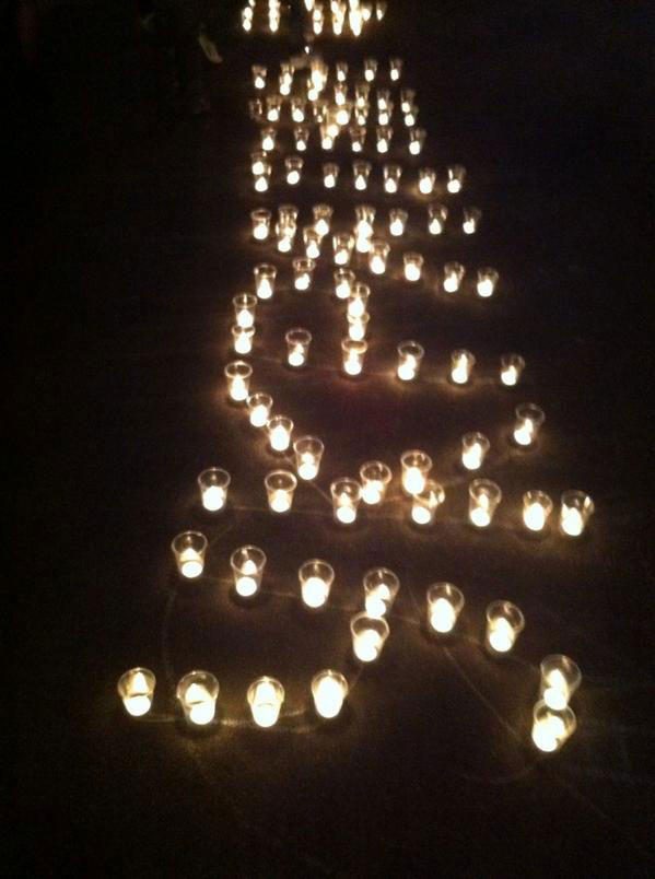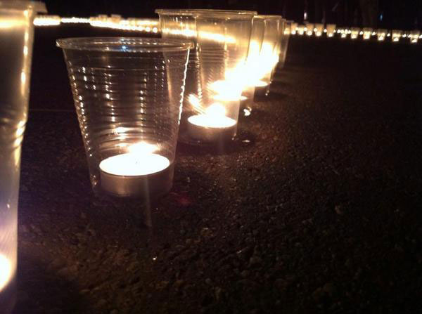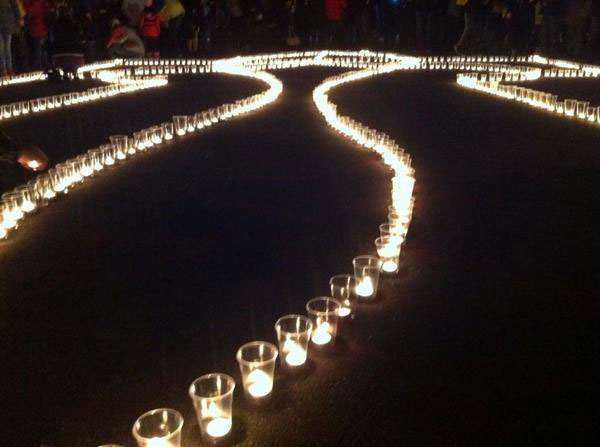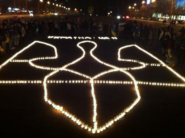 Как сообщает "Интерфакс-Украина", участники акции выложили из тысячи зажженных свечей трезубец и слова "Украина - это я", а затем спели гимн Украины. Многие участники акции надели на руки желтые повязки, как у воинов АТО, в знак солидарности с ними.