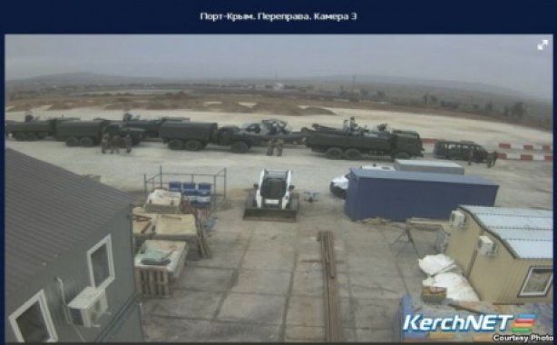 В порту "Крым", в очереди на Керченской паромной переправе, камеры зафиксировали российскую военную технику.