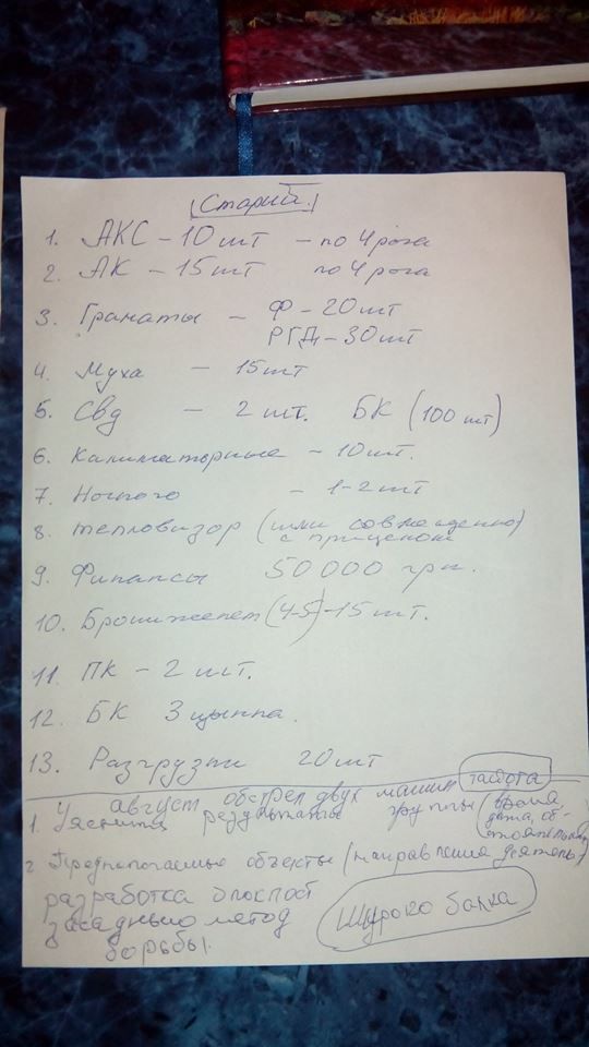 Во время обыска помещений задержанных злоумышленников, в том числе, изъяты схемы охраны объектов мариупольского порта, список необходимого диверсантам вооружения.