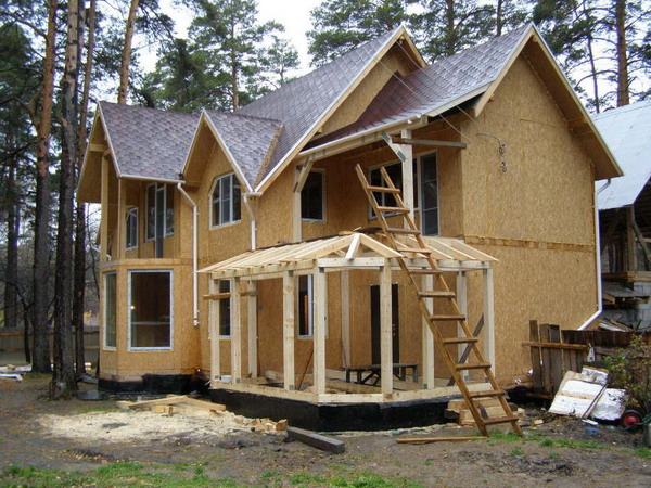Большим плюсом является тот факт, что дом по канадской технологии можно строить в любое время года. Это обусловлено тем, что СИП-панели имеют водоотталкивающее покрытие, которое защищает их от воздействия влаги. Для этих строительных работ не нужна тяжелая техника, а это значит, что число рабочих сокращается до двух-четырех человек. Сэндвич-панели легко обрабатываются, пилятся, поэтому работа с ними не требует какого-то специального инструмента, достаточно молотка, пилы, шуруповерта. Соединить панели друг с другом можно при помощи шурупов, саморезов, гвоздей и анкерных болтов.