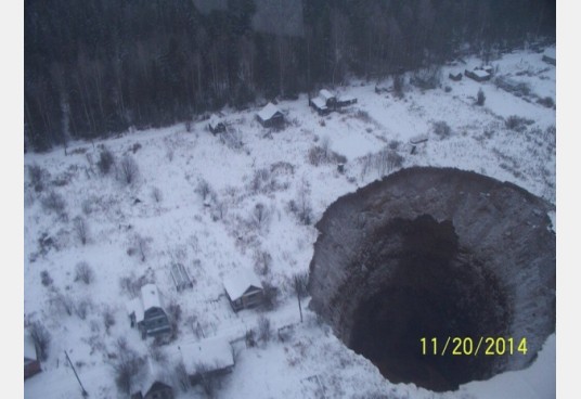 Расстояние от образовавшегося 18 ноября провала до жилых домов составляет около трех с половиной километров. За одни сутки его размер увеличился с 20х30 метров до 30х40 метров.