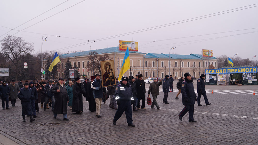 Движение автотранспорта на период шествия было перекрыто сотрудниками ГАИ. Люди шли под Украинскую патриотическую музыку и в сопровождении органов правопорядка.