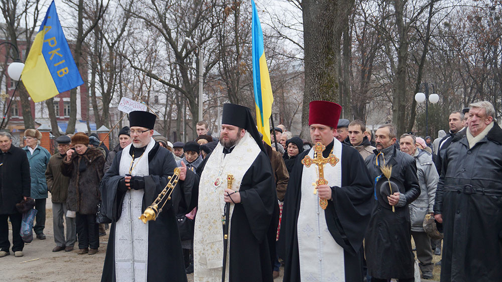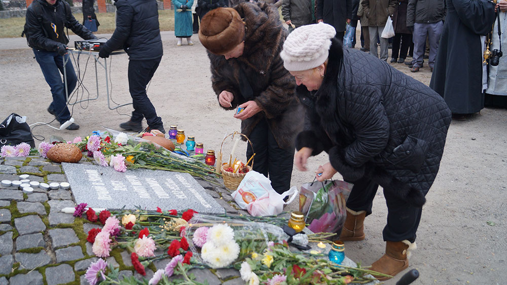 По прибытию к Памятному Кресту жертв Голодомора был отслужен молебен.