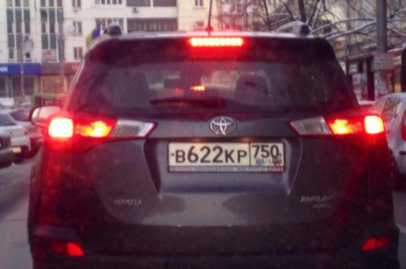 "Утренние пробки: в центре Киева то ли искренний украинский жидобандеровец из России, то ли боится, что новенький RAV4 в отместку за Путлера подрихтуют: мало того, что флажок наш повесил, да еще в номере региона 750 Московской области буковку R в аббревиатуре RUS закрыл звездой Давида, а триколор закрасил ", - написал он.