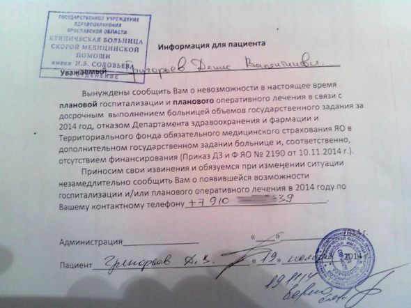 Так, стало известно, что на прошлой неделе врачи клинической больницы скорой медицинской помощи им. Соловьева (Ярославская область – ред.) стали отказывать своим пациентам в лечении.