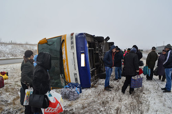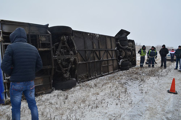 43-летний водитель рейсового автобуса «Скания», двигаясь по маршруту Харьков - Луганск, со стороны Харькова в направлении Чугуева, по неизвестным причинам, не справившись с управлением, допустил съезд на обочину и опрокидывание на правый бок.