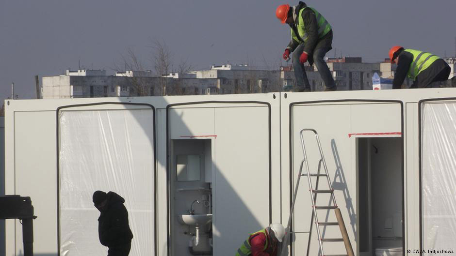 На будівельному майданчику в одному з харківських районів поблизу аеропорту вирує робота. Тут, починаючи від середини жовтня, монтують німецькі швидкозбірні будиночки. У них планується розселити біженців з Донецької та Луганської областей. Цей німецький гуманітарний проект втілується в життя за домовленістю між канцлеркою ФРН Анґелою Меркель і президентом України Петром Порошенком. З німецького боку спорудженням у Харкові містечка для вимушених переселенців опікується Німецьке товариство міжнародного співробітництва (GIZ), з українського – харківська мерія.