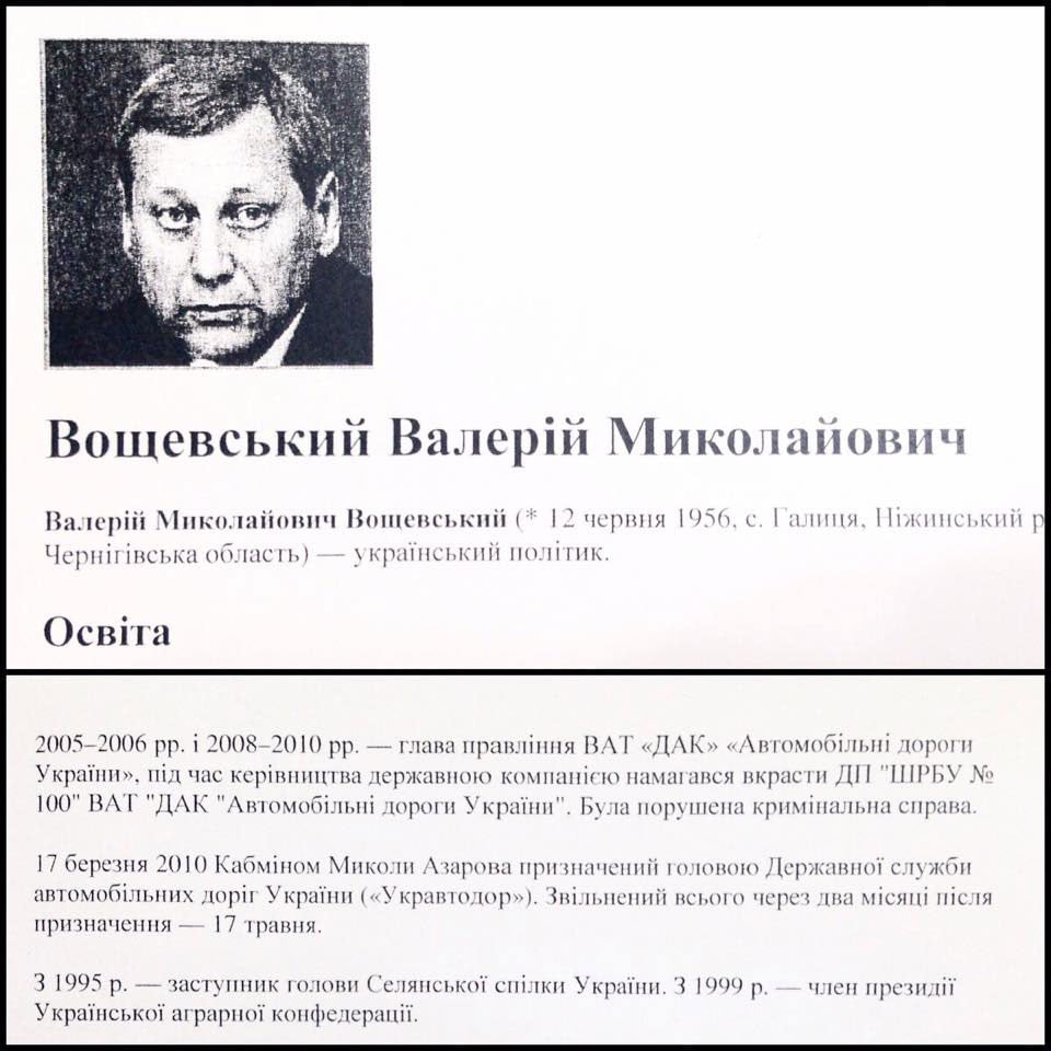 В биографии кандидата на пост вице-премьера от Радикальной партии Валерия Вощевского указано, что против него было возбуждено уголовное дело за попытку украсть "Дорожное ремонтно-строительное управление №100".