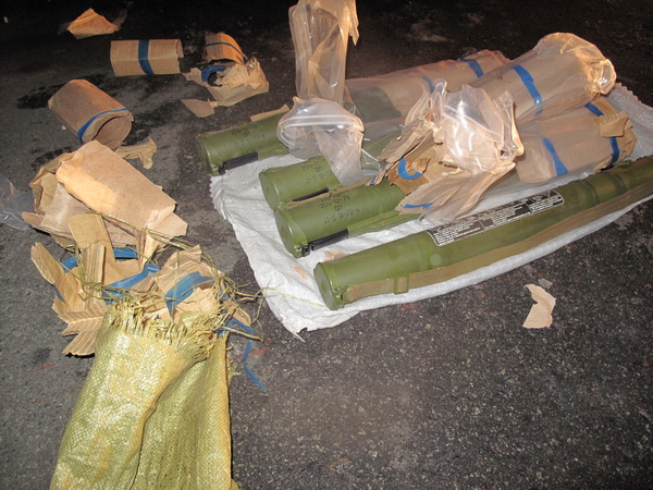 Как сообщает пресс-служба ГАИ Киева, во время проверки документов сотрудники ГАИ увидели в салоне автомобиля 4 реактивных противотанковых гранатомета «Муха».
