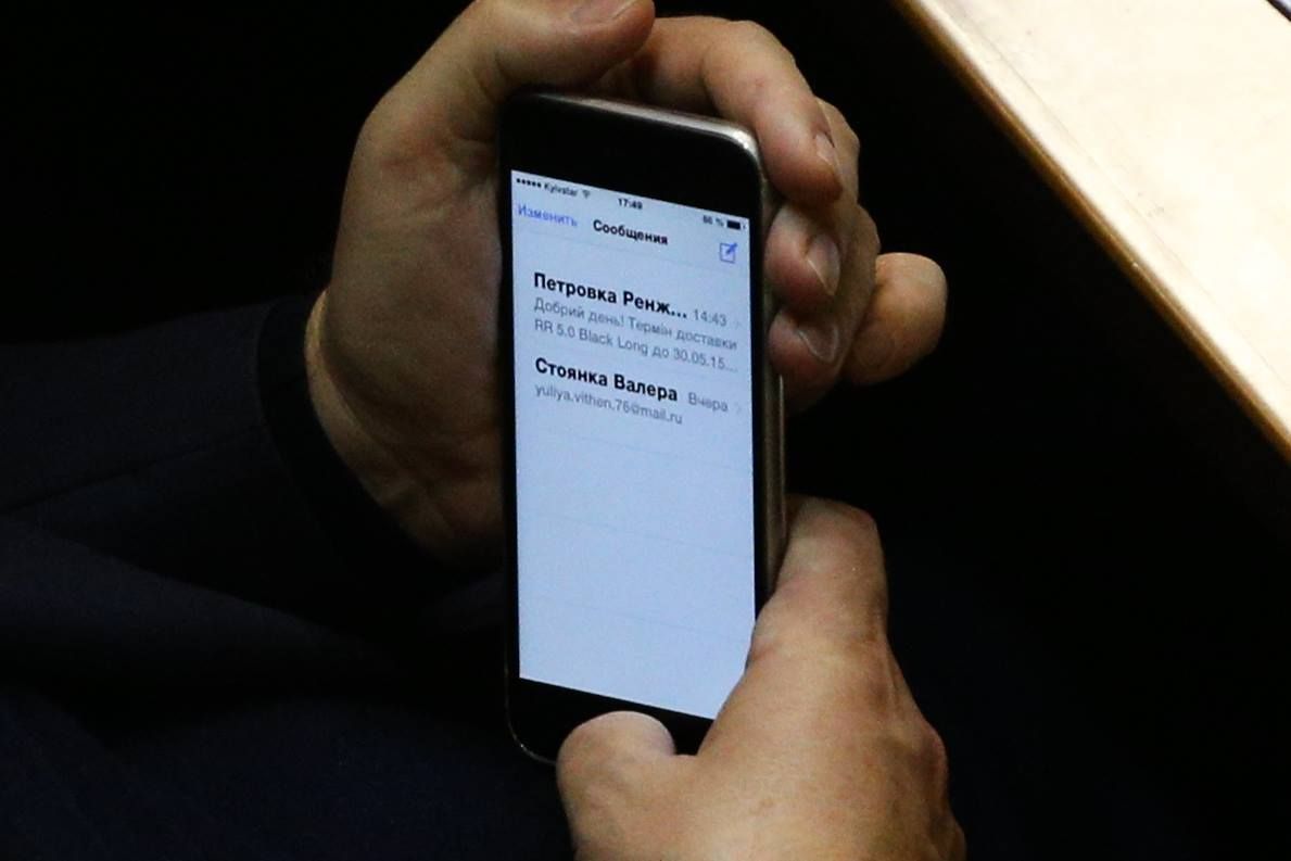 Во время пленарного заседания в объектив журналистов попал экран мобильного народного депутата группы "Воля народа" Виктора Розвадовского. Получив уведомление о доставке с автосалона Range Rover 5.0 Black Long, депутат начал читать о новых мощностях дизельных Range Rover, пишет в Facebook ГР «Честно».