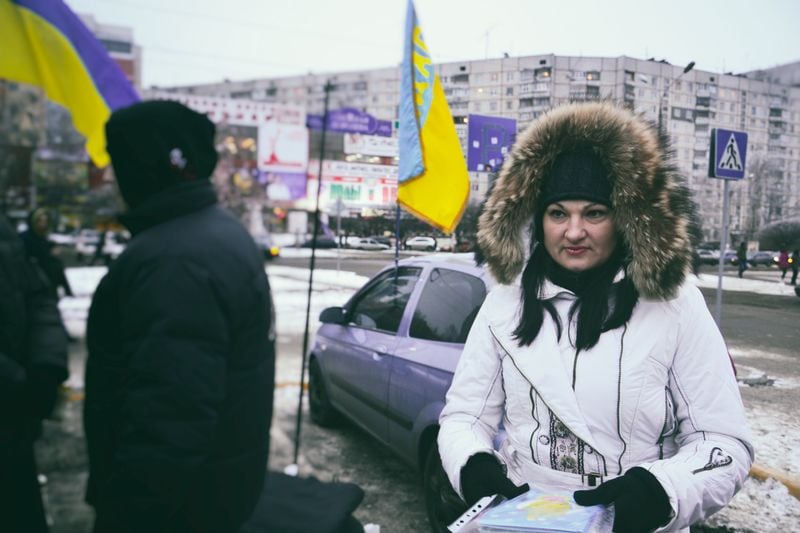 Каждый вторник, пятницу и субботу несколько машин с украинскими флагами и символикой стоят около ТРЦ «Дафи». Здесь волонтеры собирали помощь бойцам АТО еще летом. Сейчас, говорит Яна, стоять на улице сложнее, но помощи военным нужно еще больше, тем более, моральной.