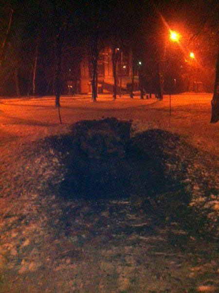 Во время осмотра места происшествия установлено, что обелиск памятного знака воинам ОУН-УПА уничтожн взрывным устройством неустановленного типа.