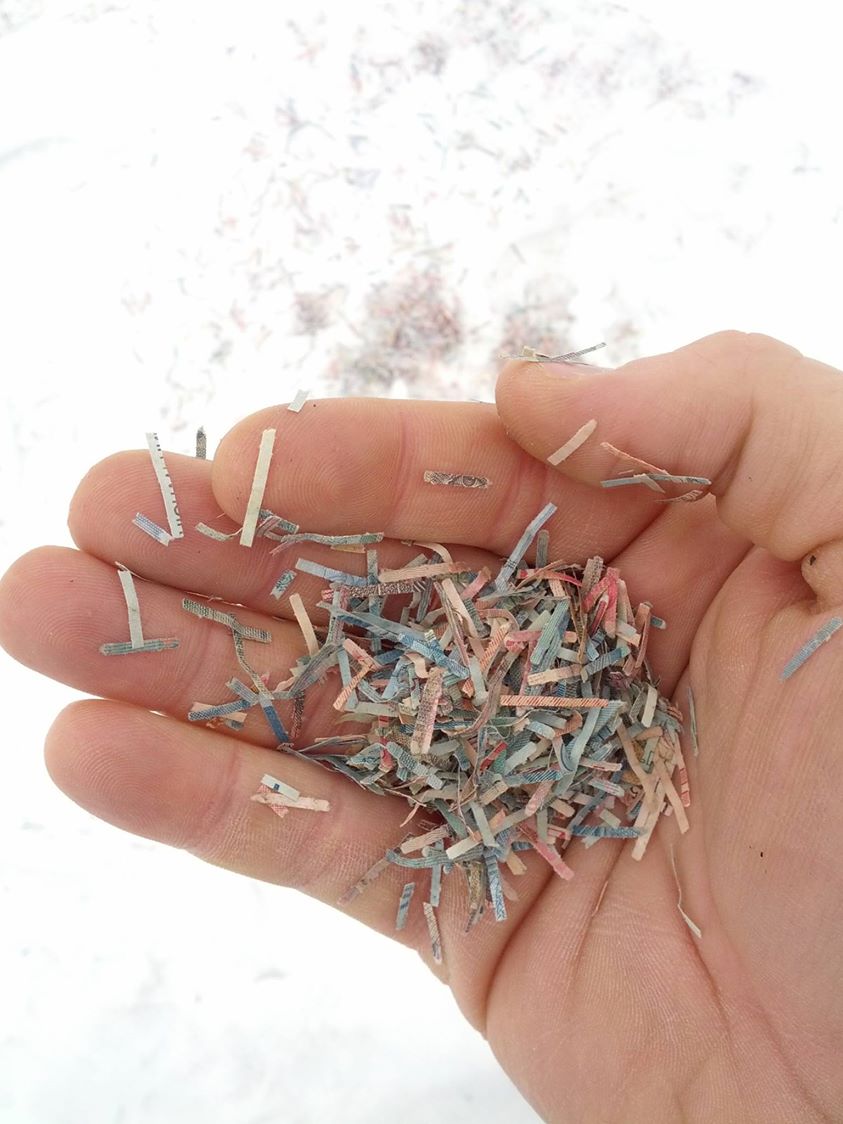 «Рассказывает: Привезли две недели назад ночью 50 мешков с этими резаными купюрами, выбросили в поле и уехали. Рядом лежали какие-то документы украинского банка БТА. Там есть всякие банкноты, и 10, и 20, и 100, и 500. Человек прикинул что где-то миллиард гривен. Трудно оценить, так как выпал снег, и вся эта масса под снегом. Полагаю что банк решил сделать так чтобы деньги не достались ДНР. Вот такая фигня», - написал журналист в Фейсбуке.
