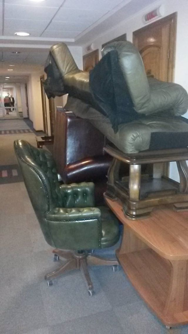 Как видно из фото, Кивалов забирает с собой диван, шкафы, вазоны и утварь с индивидуальной кухни, которая была в его кабинете.