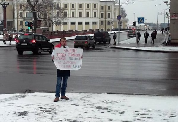 Напомним, днем 12 декабря Шубаро решил провести одиночный пикет против политики российского президента Владимира Путина возле выхода со станции метро "Купаловская". Активист держал в руках плакат с надписью "Людзі, трэба тэрмінова спыніць Пуціна! Не дапусцім III сусветнай вайны!" ("Люди, нужно срочно остановить Путина! Не допустим III мировой войны!"). На плечах у него был бело-красно-белый флаг.