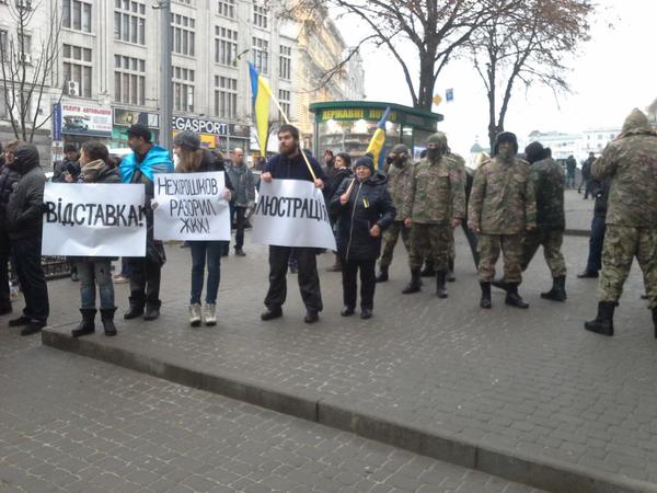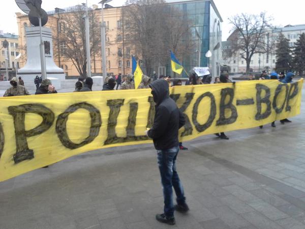 Утром в среду к департаменту жилищного хозяйства Харьковского горсовета пришли люди в масках. Шли с площади Конституции. Шли прямо через площадь, не обращая внимания на машины. Шли демонстративно и шумно, с петардами и файерами. Шли требовать отставки директора департамента Романа Нехорошкова. Впереди – растяжка «Нехорошков - вор», позади – плакаты «Люстрація», «Відставка» и «Нехорошков разорил ЖКХ».