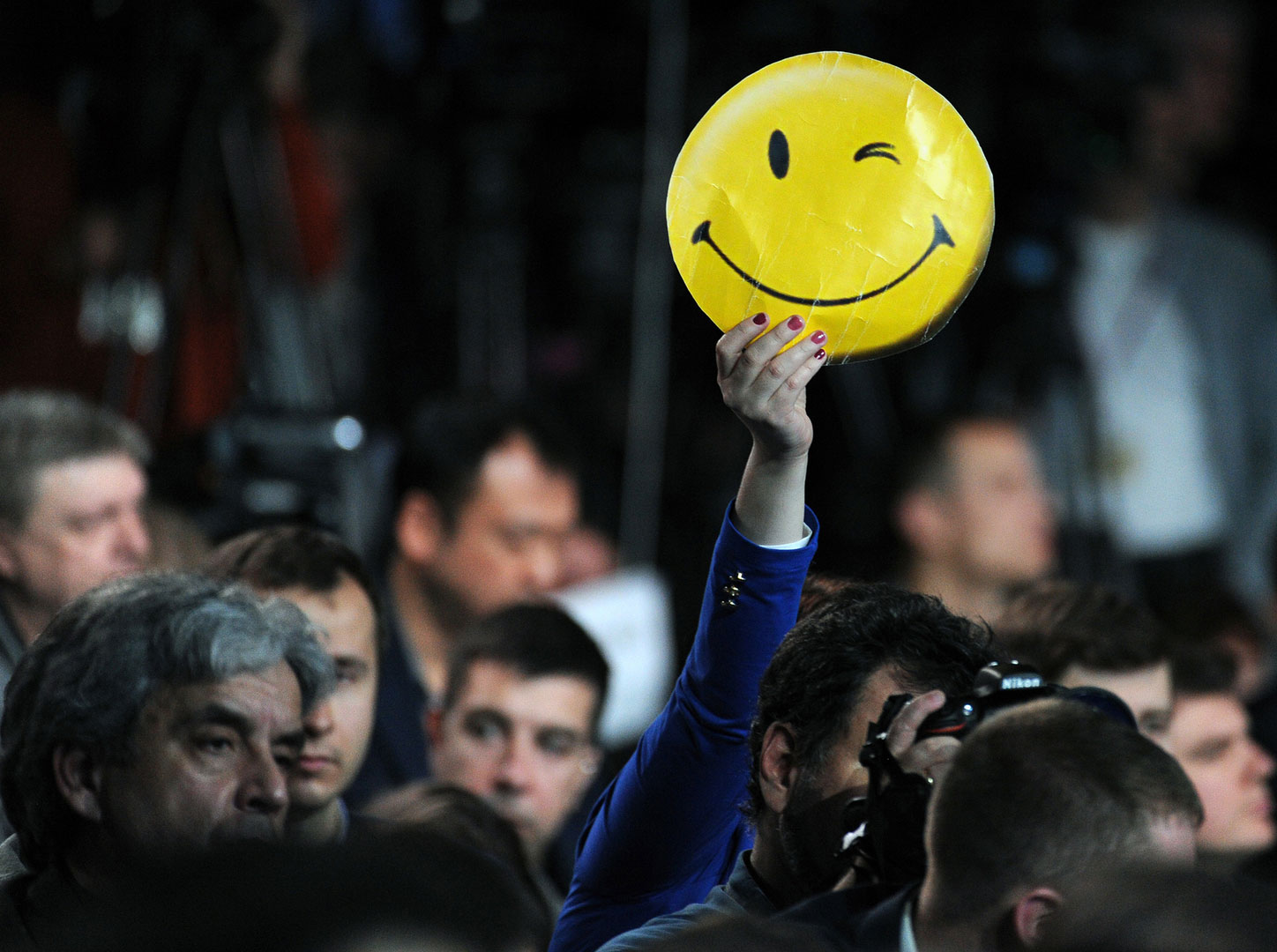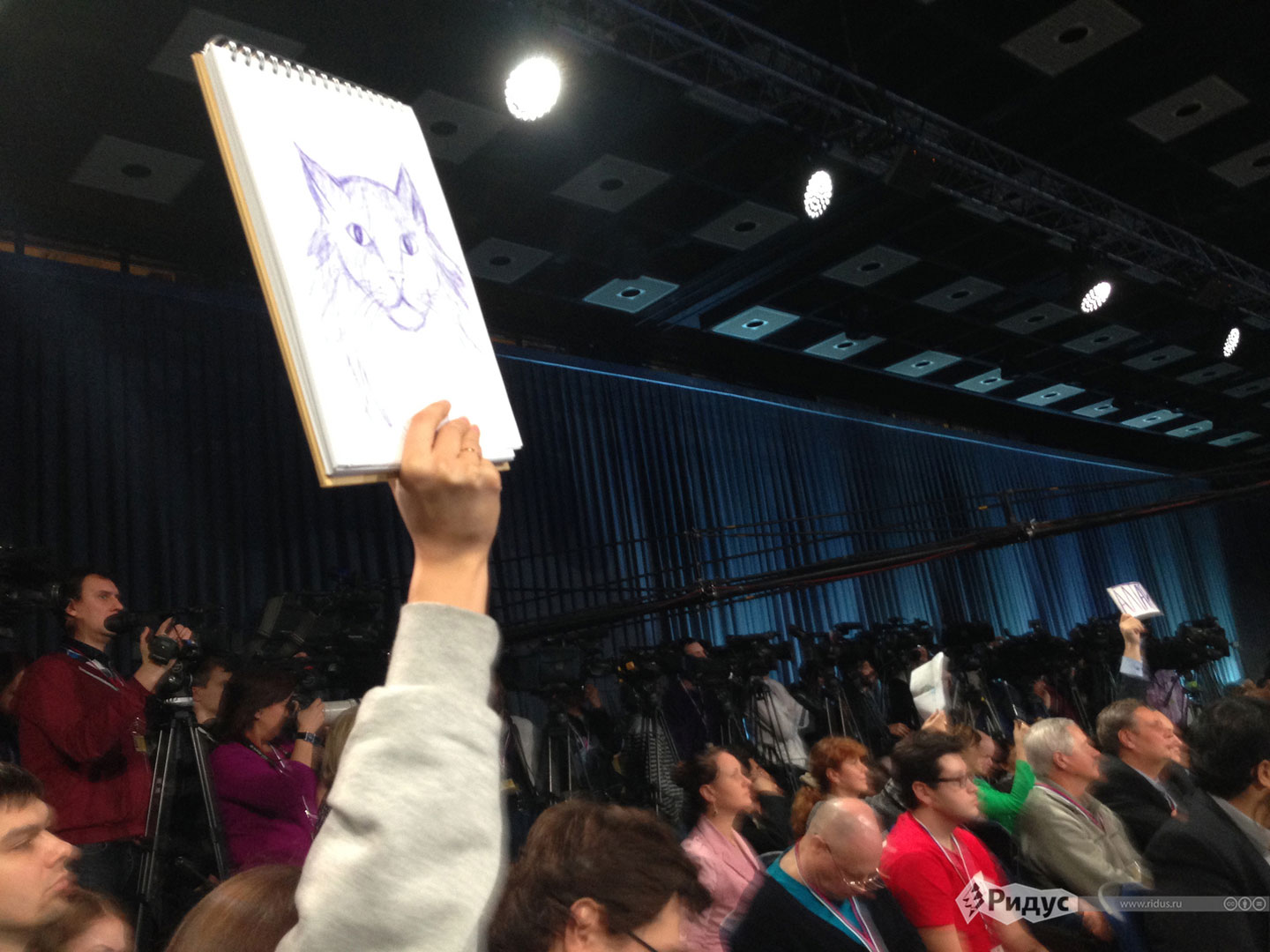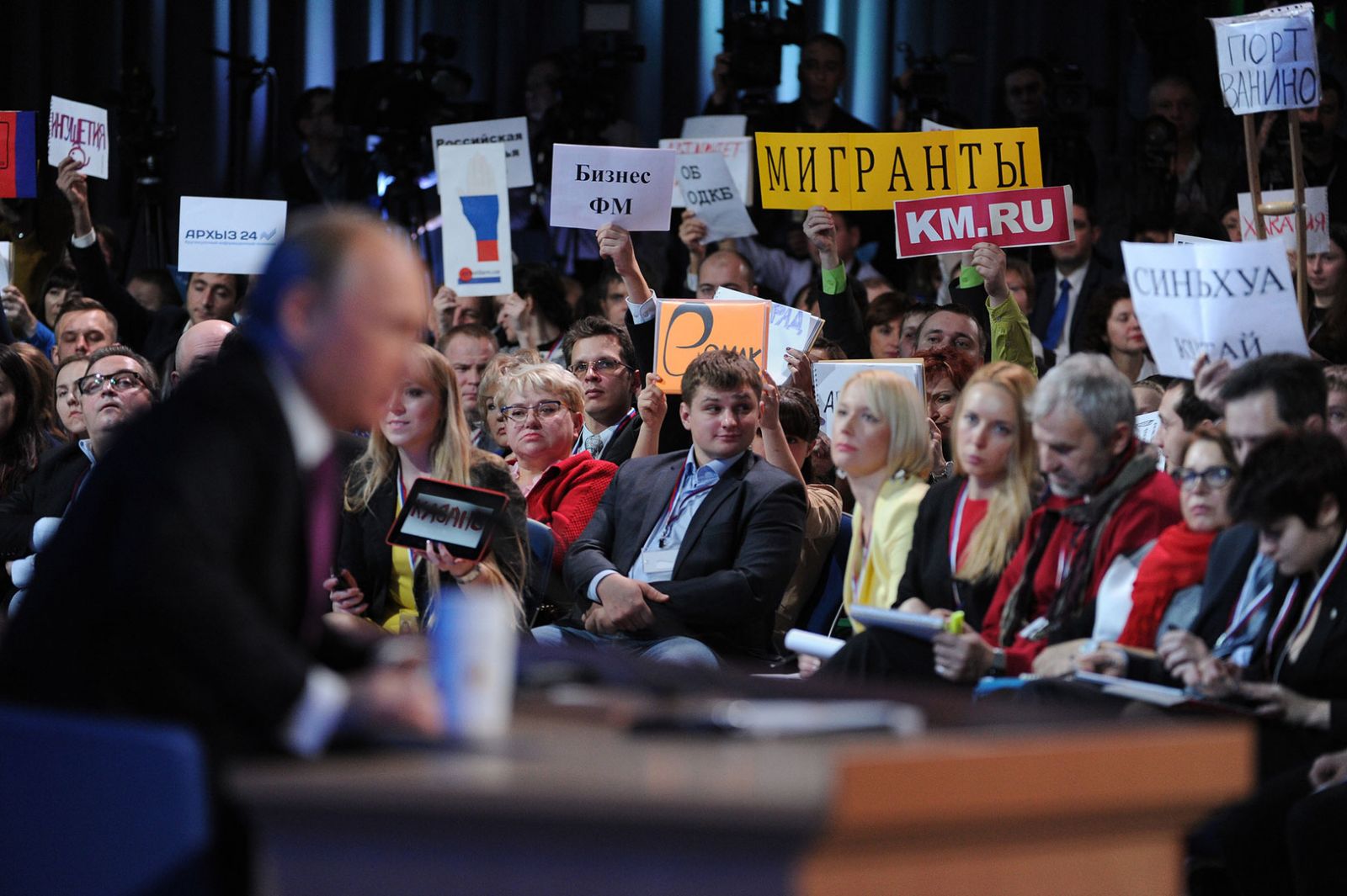 "Павлины" на пресс-конференции Путина (фото) 18 декабря 2014 20:32 Чтобы задать на пресс-конференции вопрос Путину, акулам российского пера пришлось уподобиться павлинам.