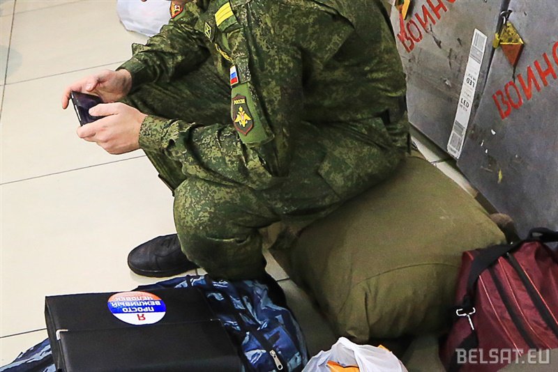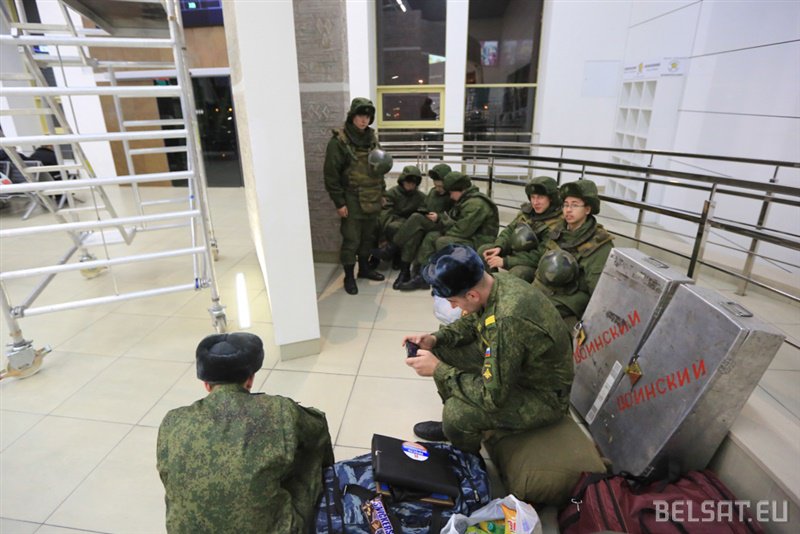 На железнодорожном вокзале в Минске замечены несколько солдат российской армии в полном обмундировании.